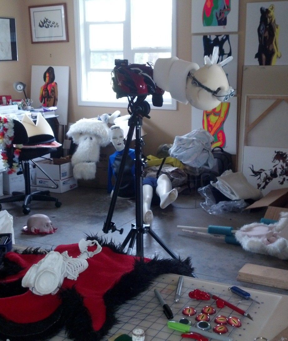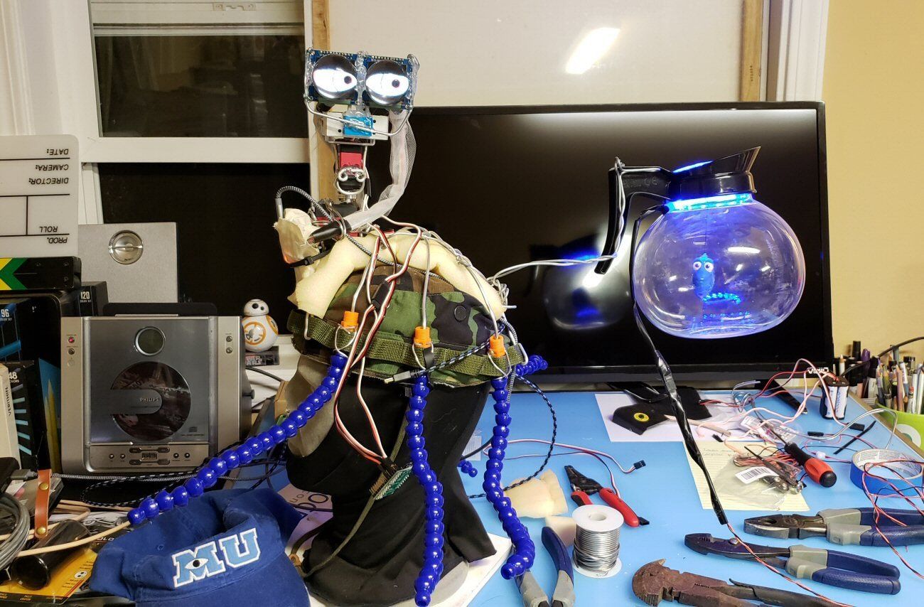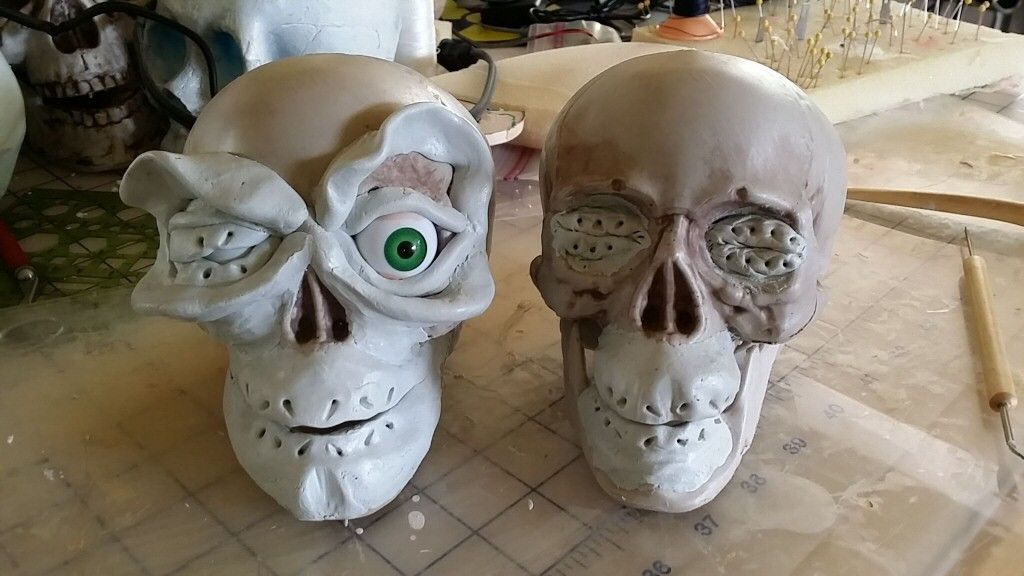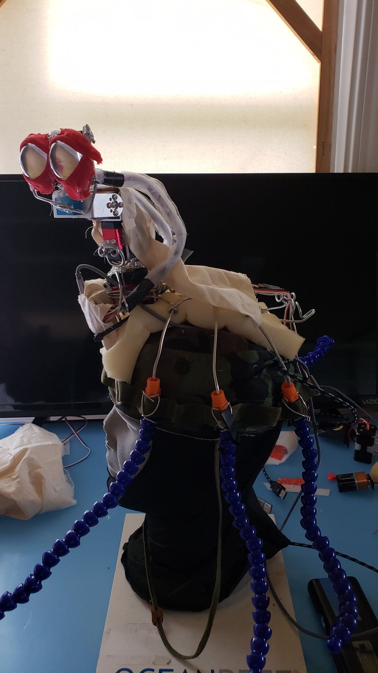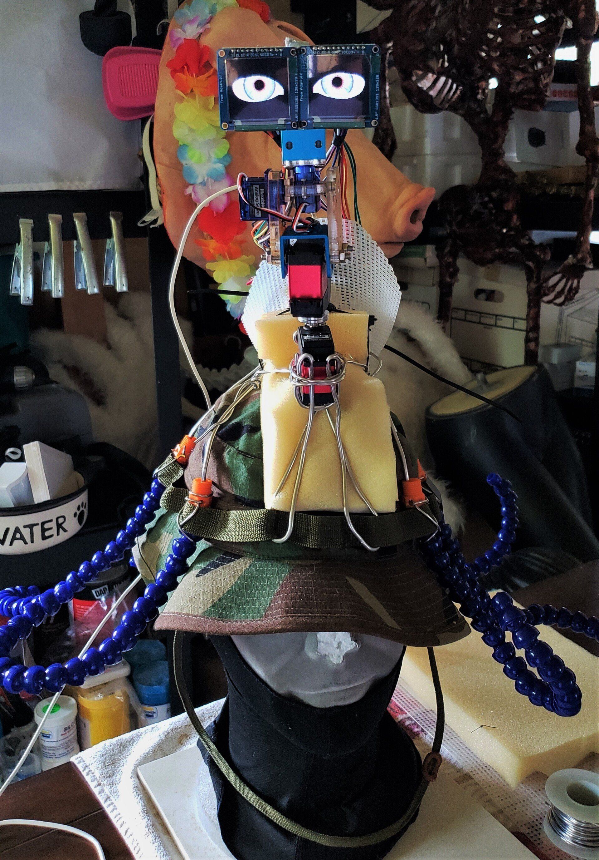 Animatronics, setup. Spider head has servos to Blinks, for the eyes move left/right and a servo for the body to move