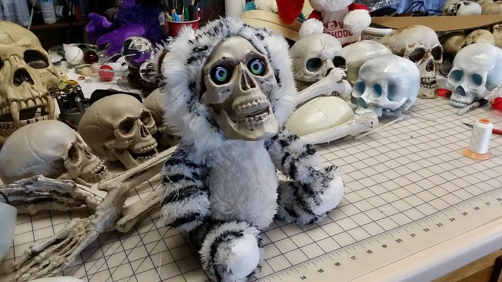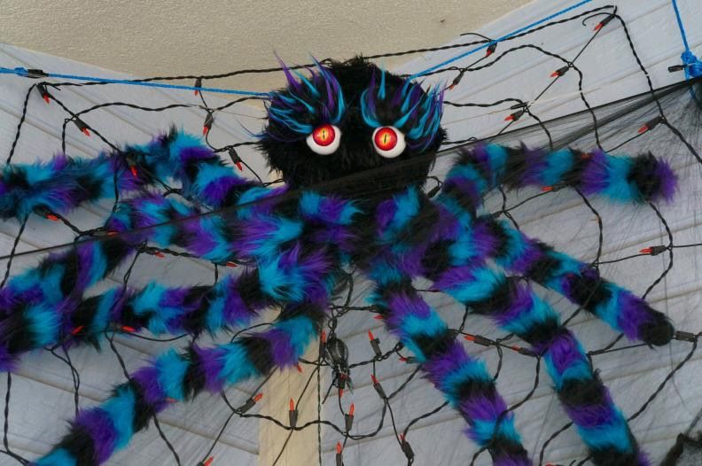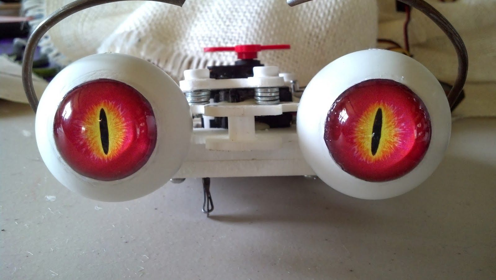 Adding spider fur to Self-contained animatronic Spider head, Blinks, eyes move, with a servo to shift the body left/right