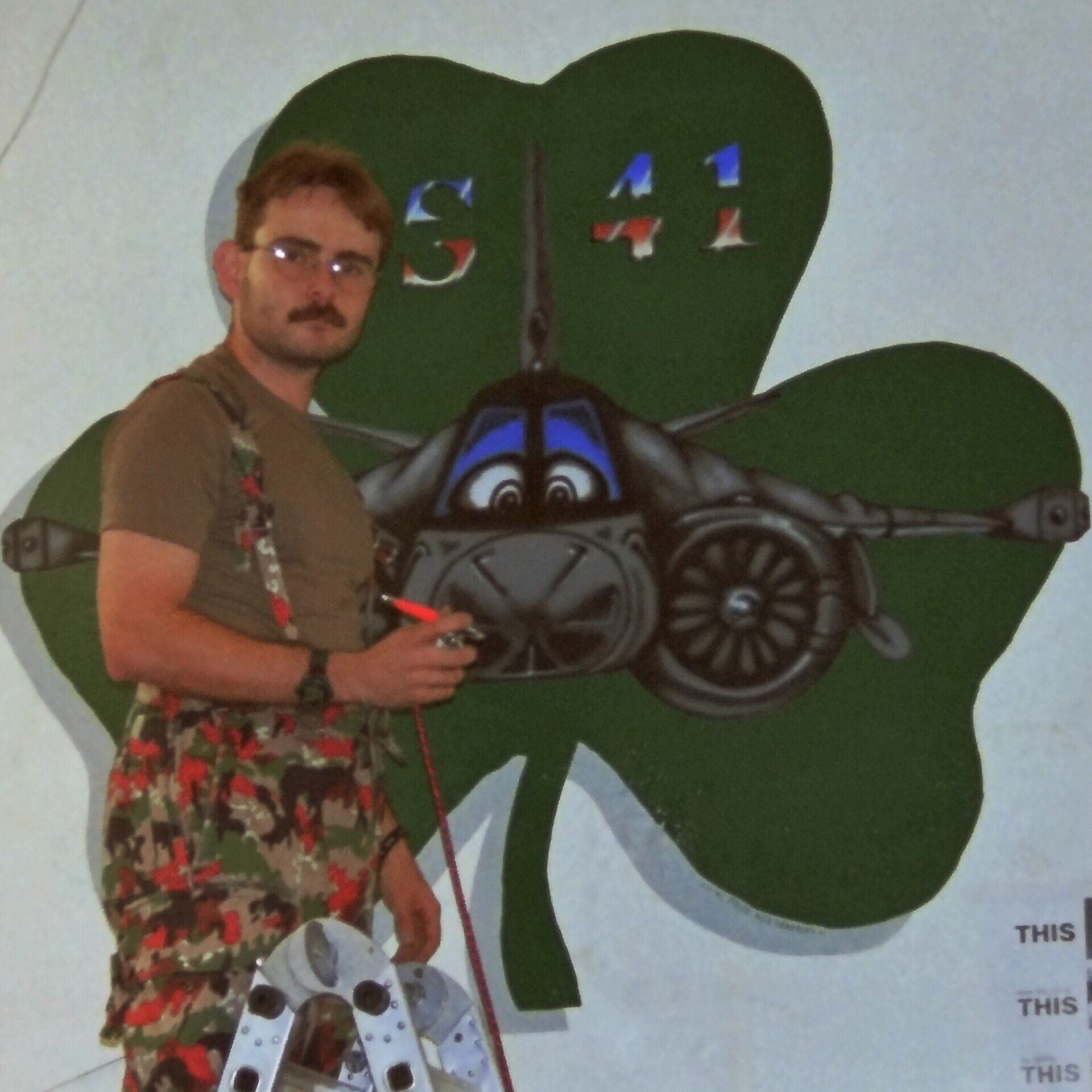 During my time in the Military, whenever I had free time, I would paint Military theme and "Morale Artwork" for "free" on various surfaces, like hangers, buildings, planes, equipment, and Military signs. I also designed custom Military insignias, logos, flags, and built large (handmade) Military Parade floats, from 20 to 40ft long.